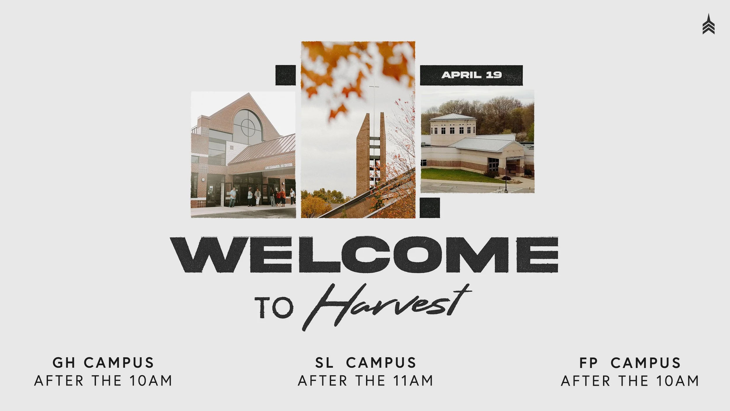 Join us for Welcome to Harvest on April 19, immediately following the last service at your campus. This 30-40 minute gathering is your chance to meet the campus pastor, hear about our mission and ministries, and ask any questions you may have. We want to help you understand what it means to be part of a vertical church and how you can get connected as we grow together in faith.